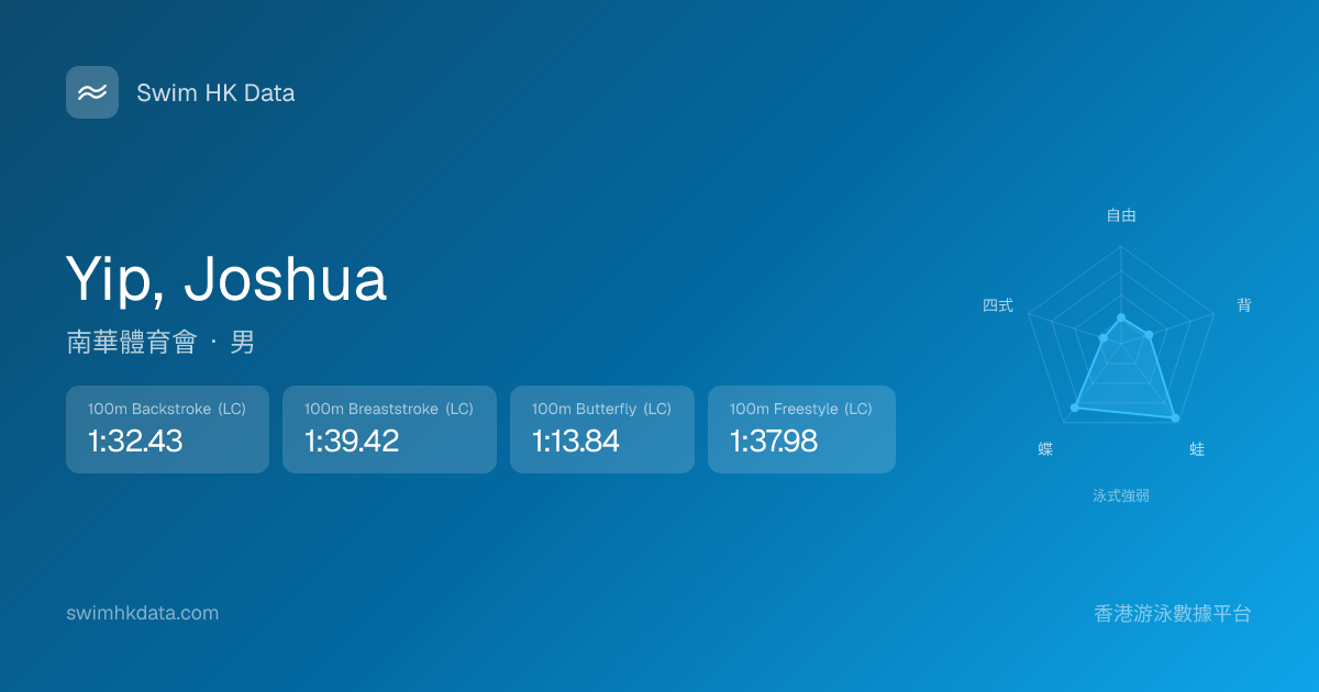 此圖表根據你所有比賽成績計算,顯示你在各泳式的相對強弱,僅供參考。繼續努力,每一次練習都會讓你更快更強!💪