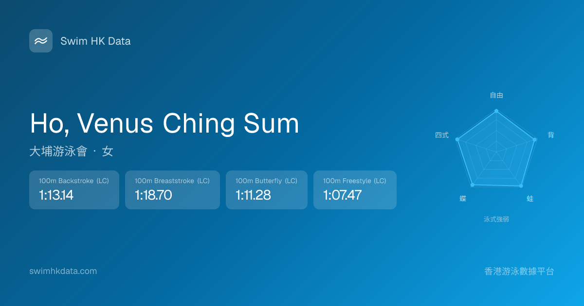 此圖表根據你所有比賽成績計算,顯示你在各泳式的相對強弱,僅供參考。繼續努力,每一次練習都會讓你更快更強!💪