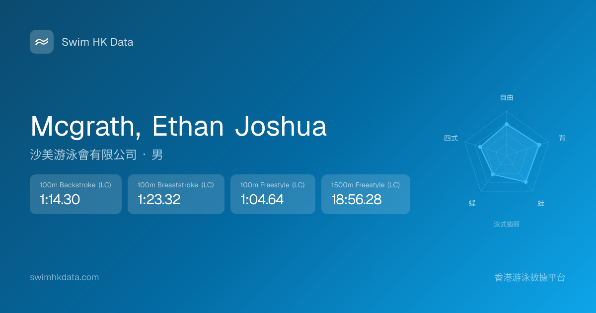 此圖表根據你所有比賽成績計算,顯示你在各泳式的相對強弱,僅供參考。繼續努力,每一次練習都會讓你更快更強!💪