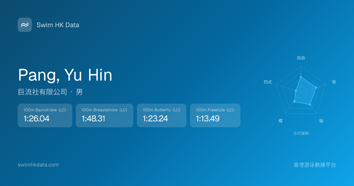 此圖表根據你所有比賽成績計算,顯示你在各泳式的相對強弱,僅供參考。繼續努力,每一次練習都會讓你更快更強!💪