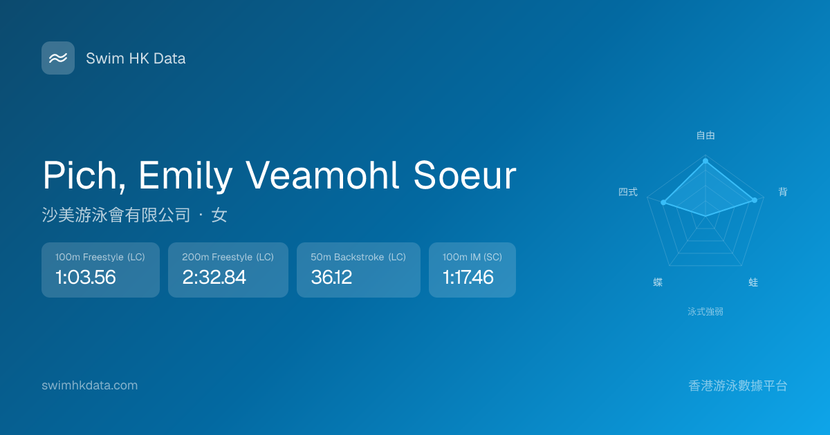 此圖表根據你所有比賽成績計算,顯示你在各泳式的相對強弱,僅供參考。繼續努力,每一次練習都會讓你更快更強!💪