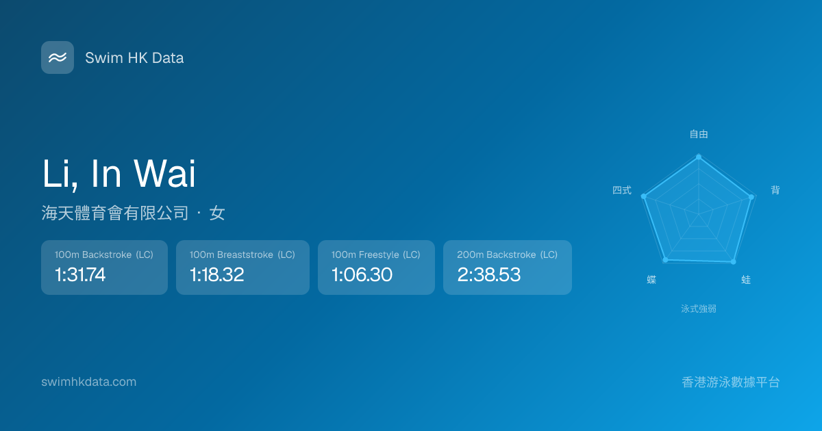 此圖表根據你所有比賽成績計算,顯示你在各泳式的相對強弱,僅供參考。繼續努力,每一次練習都會讓你更快更強!💪