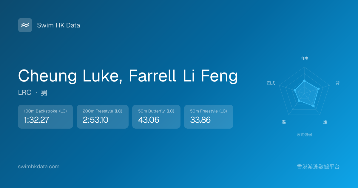此圖表根據你所有比賽成績計算,顯示你在各泳式的相對強弱,僅供參考。繼續努力,每一次練習都會讓你更快更強!💪