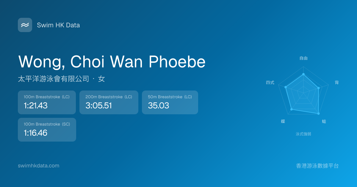 此圖表根據你所有比賽成績計算,顯示你在各泳式的相對強弱,僅供參考。繼續努力,每一次練習都會讓你更快更強!💪