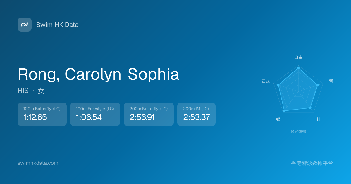 此圖表根據你所有比賽成績計算,顯示你在各泳式的相對強弱,僅供參考。繼續努力,每一次練習都會讓你更快更強!💪