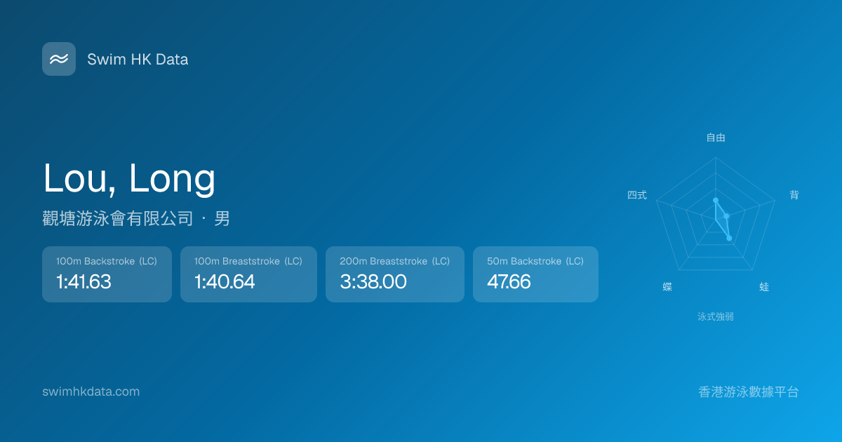 此圖表根據你所有比賽成績計算,顯示你在各泳式的相對強弱,僅供參考。繼續努力,每一次練習都會讓你更快更強!💪
