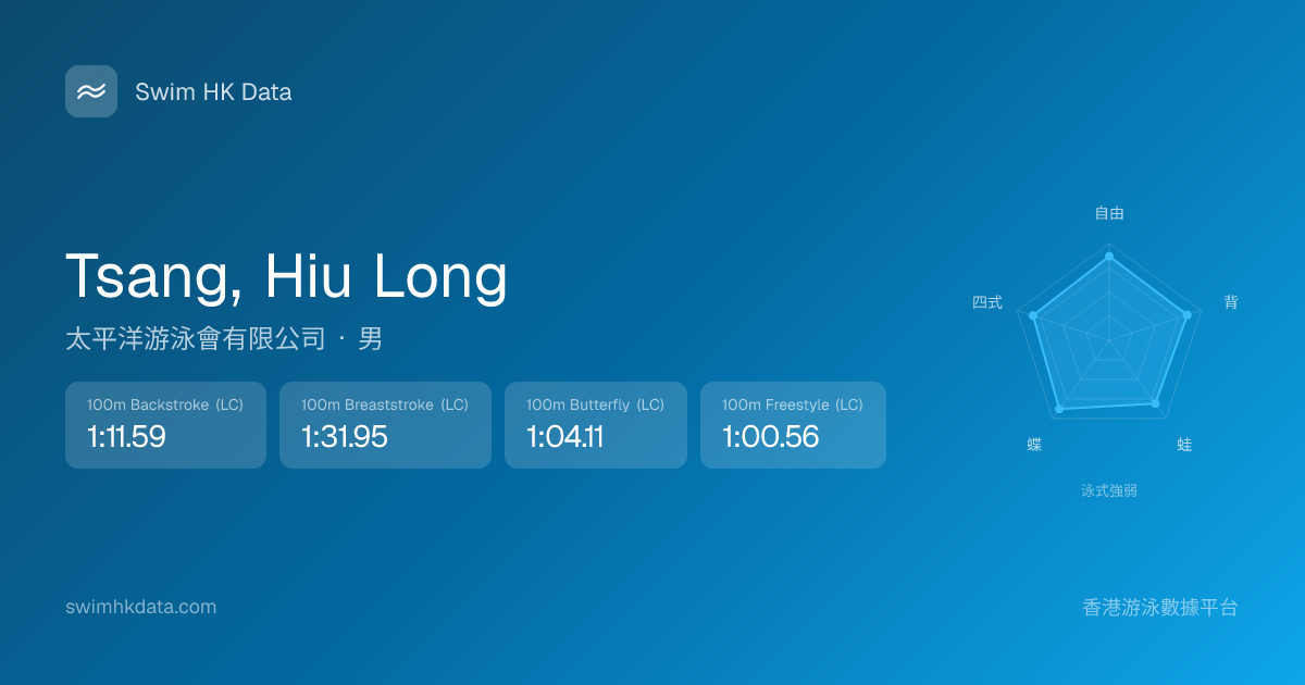 此圖表根據你所有比賽成績計算,顯示你在各泳式的相對強弱,僅供參考。繼續努力,每一次練習都會讓你更快更強!💪