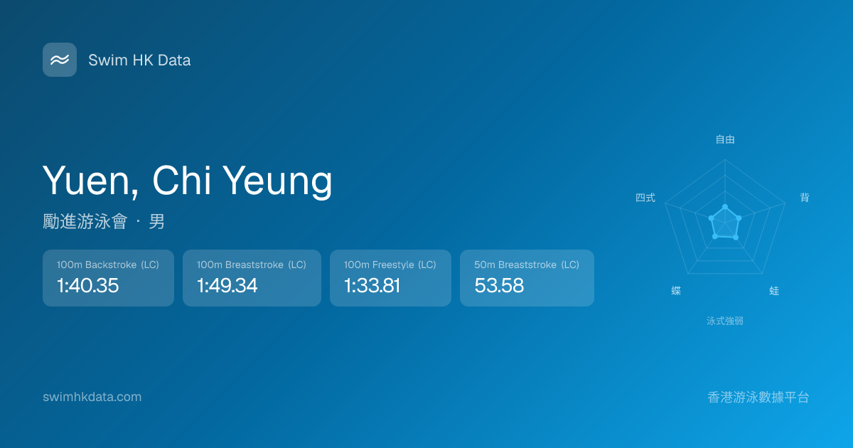 此圖表根據你所有比賽成績計算,顯示你在各泳式的相對強弱,僅供參考。繼續努力,每一次練習都會讓你更快更強!💪