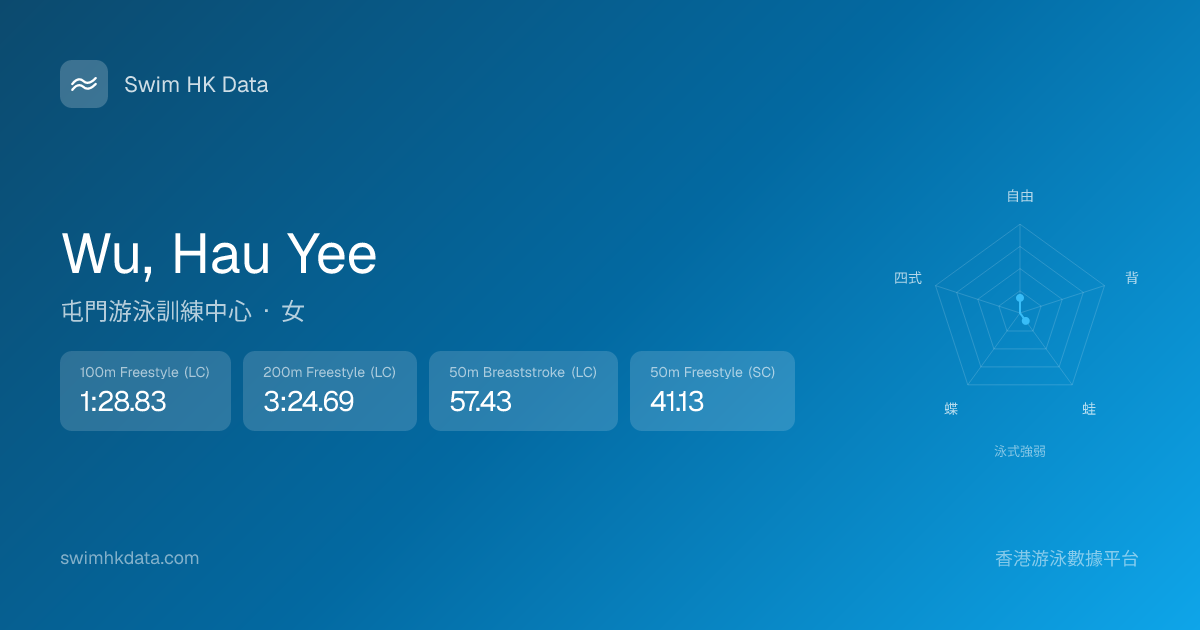 此圖表根據你所有比賽成績計算,顯示你在各泳式的相對強弱,僅供參考。繼續努力,每一次練習都會讓你更快更強!💪