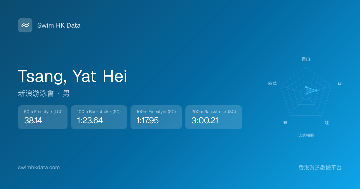 此圖表根據你所有比賽成績計算,顯示你在各泳式的相對強弱,僅供參考。繼續努力,每一次練習都會讓你更快更強!💪