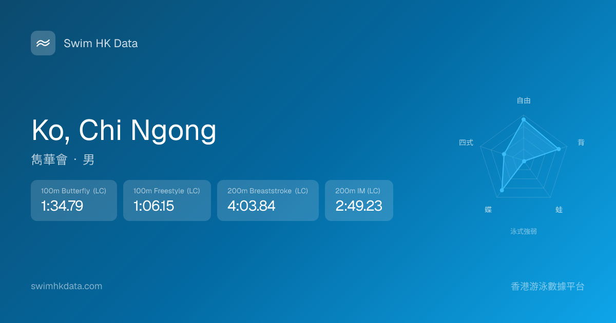 此圖表根據你所有比賽成績計算,顯示你在各泳式的相對強弱,僅供參考。繼續努力,每一次練習都會讓你更快更強!💪