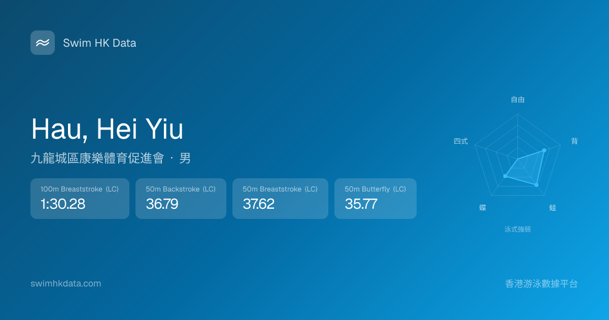 此圖表根據你所有比賽成績計算,顯示你在各泳式的相對強弱,僅供參考。繼續努力,每一次練習都會讓你更快更強!💪