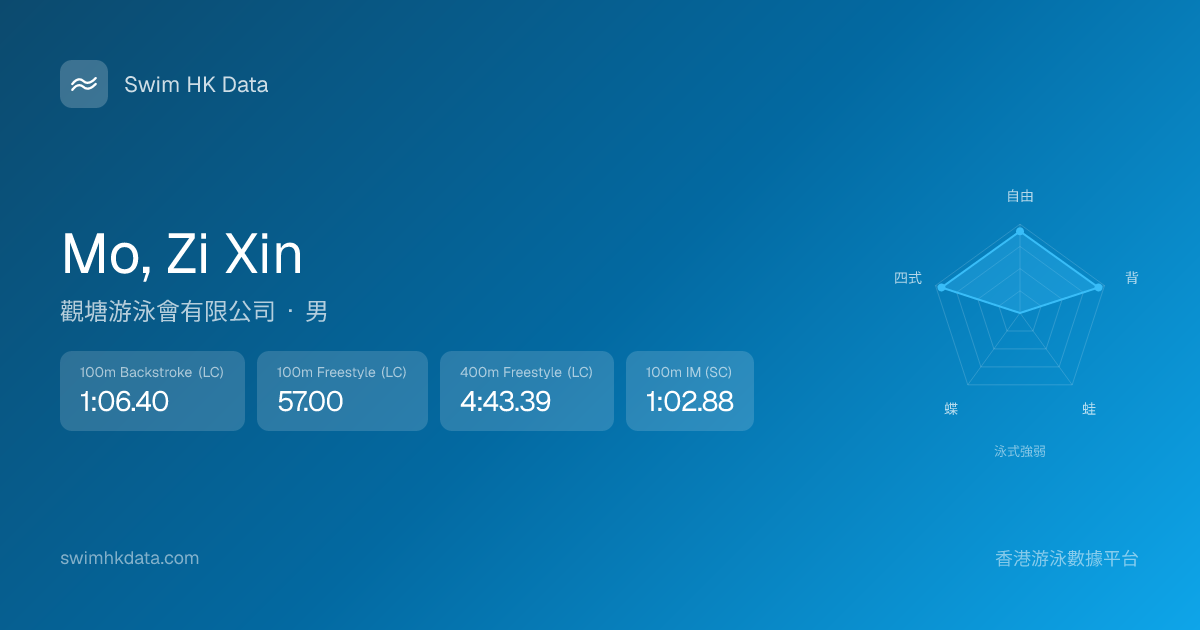 此圖表根據你所有比賽成績計算,顯示你在各泳式的相對強弱,僅供參考。繼續努力,每一次練習都會讓你更快更強!💪