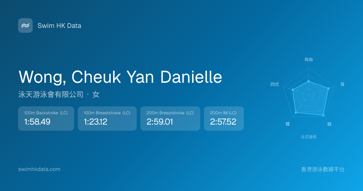 此圖表根據你所有比賽成績計算,顯示你在各泳式的相對強弱,僅供參考。繼續努力,每一次練習都會讓你更快更強!💪