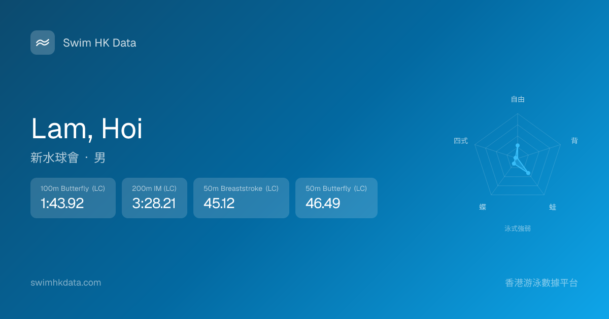 此圖表根據你所有比賽成績計算,顯示你在各泳式的相對強弱,僅供參考。繼續努力,每一次練習都會讓你更快更強!💪