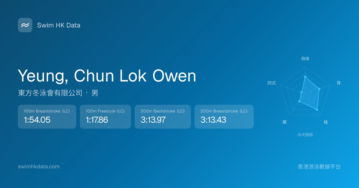 此圖表根據你所有比賽成績計算,顯示你在各泳式的相對強弱,僅供參考。繼續努力,每一次練習都會讓你更快更強!💪