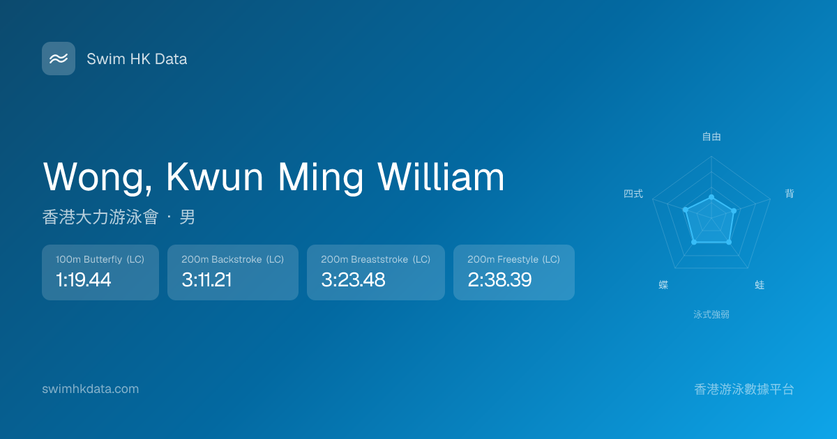 此圖表根據你所有比賽成績計算,顯示你在各泳式的相對強弱,僅供參考。繼續努力,每一次練習都會讓你更快更強!💪