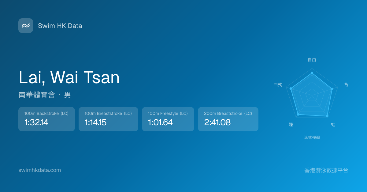 此圖表根據你所有比賽成績計算,顯示你在各泳式的相對強弱,僅供參考。繼續努力,每一次練習都會讓你更快更強!💪
