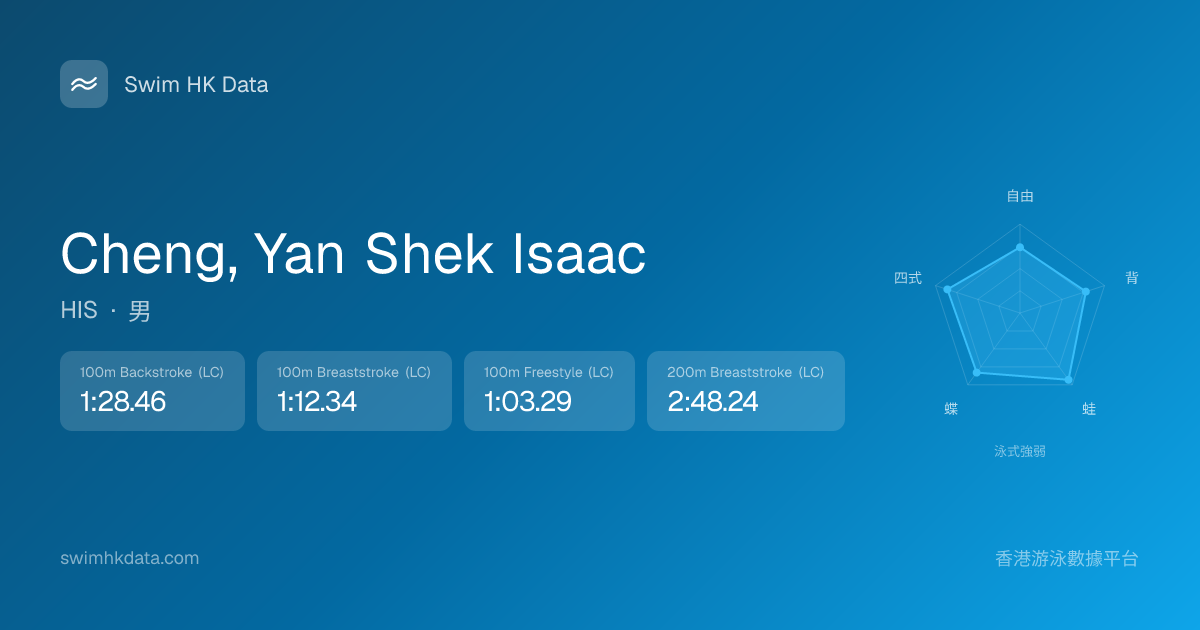 此圖表根據你所有比賽成績計算,顯示你在各泳式的相對強弱,僅供參考。繼續努力,每一次練習都會讓你更快更強!💪