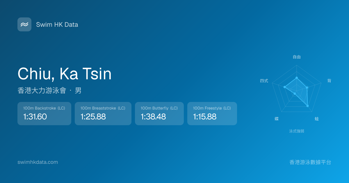 此圖表根據你所有比賽成績計算,顯示你在各泳式的相對強弱,僅供參考。繼續努力,每一次練習都會讓你更快更強!💪