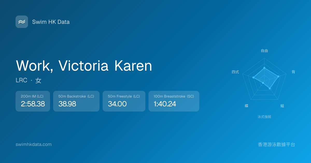 此圖表根據你所有比賽成績計算,顯示你在各泳式的相對強弱,僅供參考。繼續努力,每一次練習都會讓你更快更強!💪