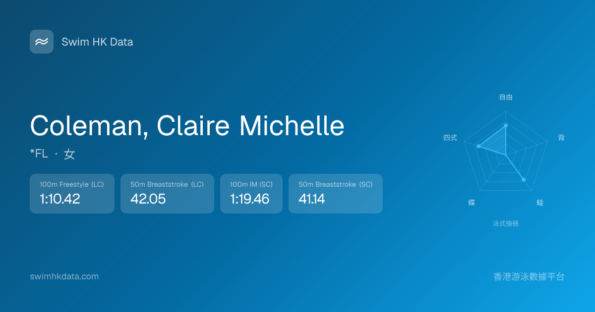 此圖表根據你所有比賽成績計算,顯示你在各泳式的相對強弱,僅供參考。繼續努力,每一次練習都會讓你更快更強!💪