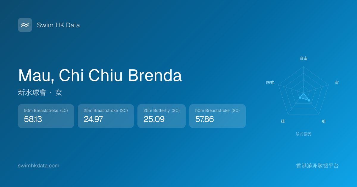 此圖表根據你所有比賽成績計算,顯示你在各泳式的相對強弱,僅供參考。繼續努力,每一次練習都會讓你更快更強!💪