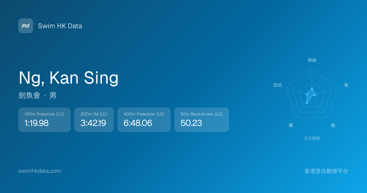 此圖表根據你所有比賽成績計算,顯示你在各泳式的相對強弱,僅供參考。繼續努力,每一次練習都會讓你更快更強!💪