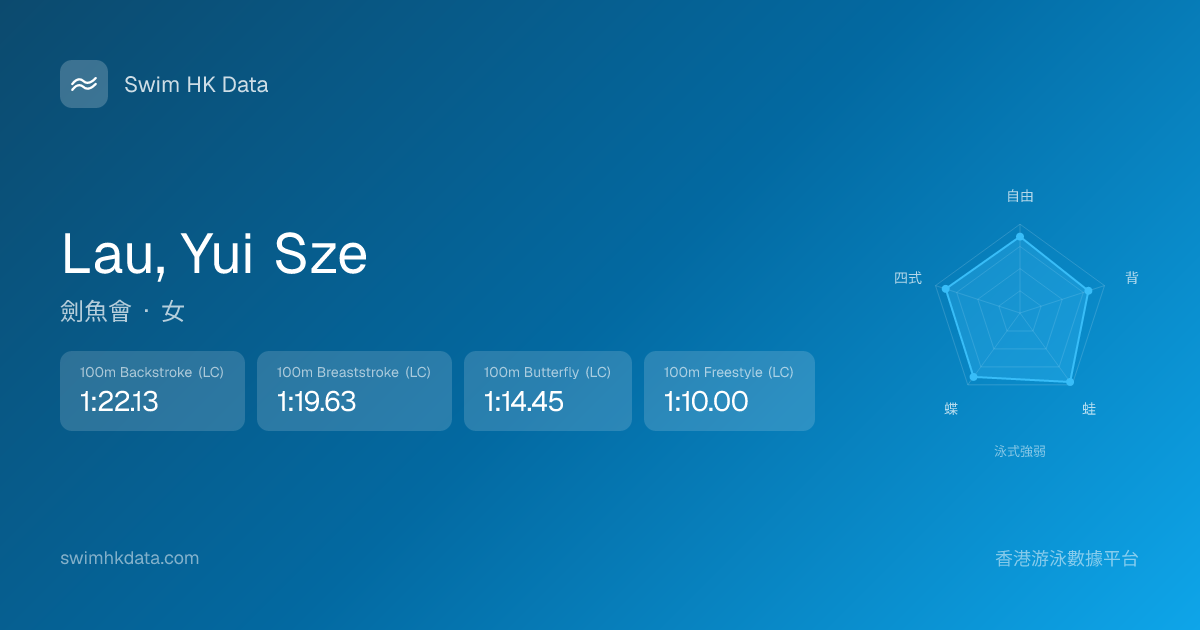 此圖表根據你所有比賽成績計算,顯示你在各泳式的相對強弱,僅供參考。繼續努力,每一次練習都會讓你更快更強!💪