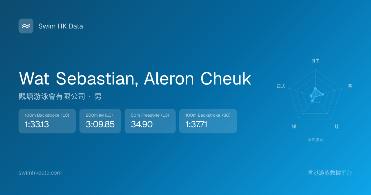 此圖表根據你所有比賽成績計算,顯示你在各泳式的相對強弱,僅供參考。繼續努力,每一次練習都會讓你更快更強!💪