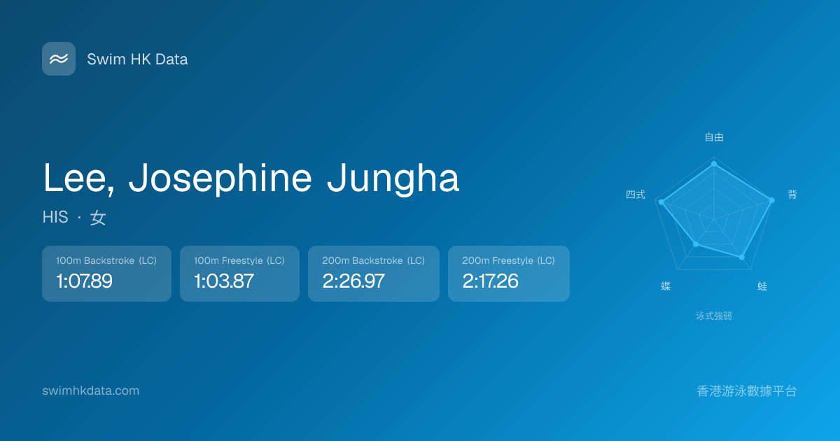 此圖表根據你所有比賽成績計算,顯示你在各泳式的相對強弱,僅供參考。繼續努力,每一次練習都會讓你更快更強!💪