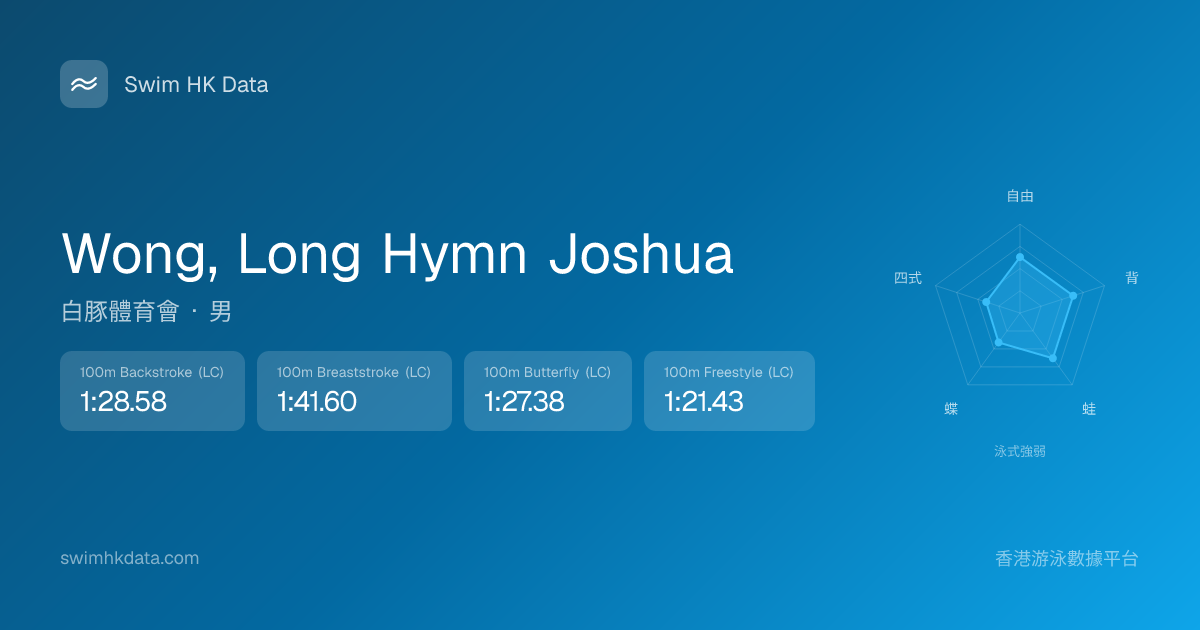 此圖表根據你所有比賽成績計算,顯示你在各泳式的相對強弱,僅供參考。繼續努力,每一次練習都會讓你更快更強!💪