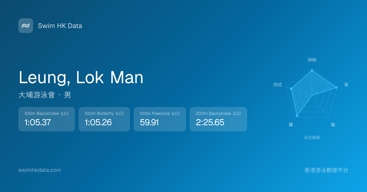 此圖表根據你所有比賽成績計算,顯示你在各泳式的相對強弱,僅供參考。繼續努力,每一次練習都會讓你更快更強!💪