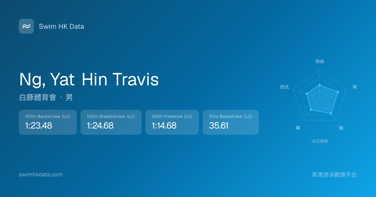 此圖表根據你所有比賽成績計算,顯示你在各泳式的相對強弱,僅供參考。繼續努力,每一次練習都會讓你更快更強!💪