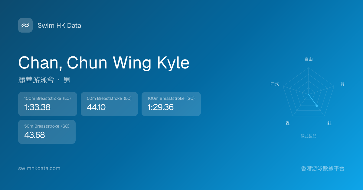 此圖表根據你所有比賽成績計算,顯示你在各泳式的相對強弱,僅供參考。繼續努力,每一次練習都會讓你更快更強!💪
