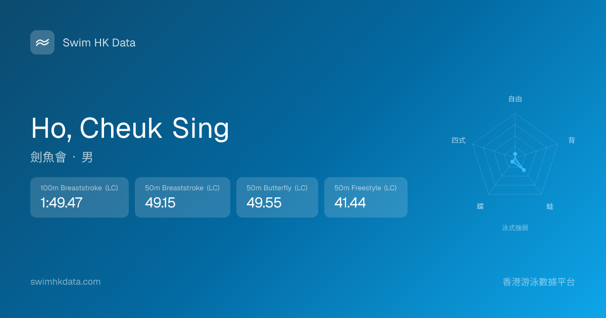 此圖表根據你所有比賽成績計算,顯示你在各泳式的相對強弱,僅供參考。繼續努力,每一次練習都會讓你更快更強!💪