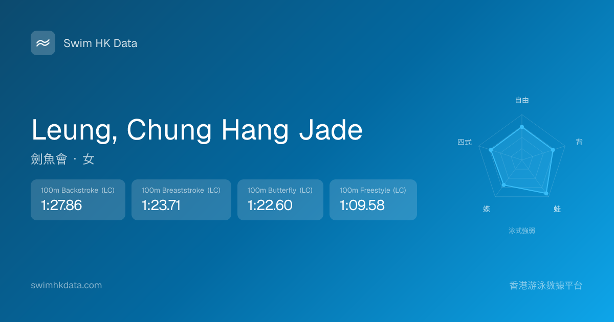 此圖表根據你所有比賽成績計算,顯示你在各泳式的相對強弱,僅供參考。繼續努力,每一次練習都會讓你更快更強!💪