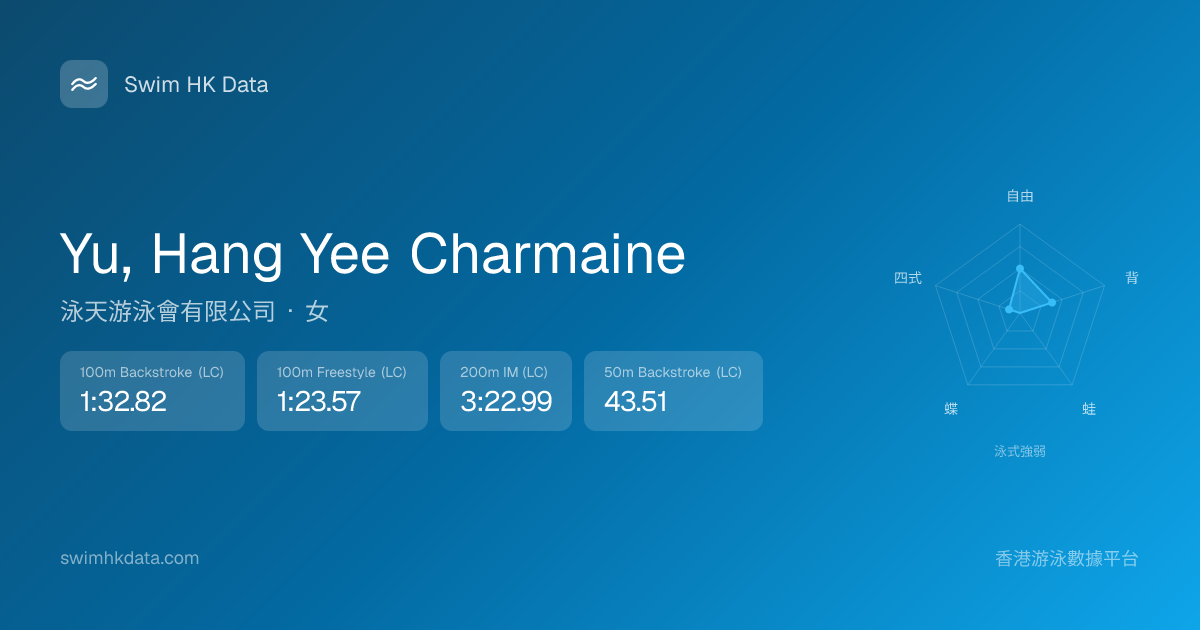 此圖表根據你所有比賽成績計算,顯示你在各泳式的相對強弱,僅供參考。繼續努力,每一次練習都會讓你更快更強!💪
