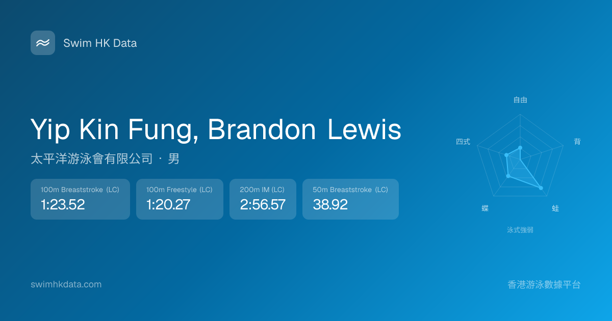 此圖表根據你所有比賽成績計算,顯示你在各泳式的相對強弱,僅供參考。繼續努力,每一次練習都會讓你更快更強!💪
