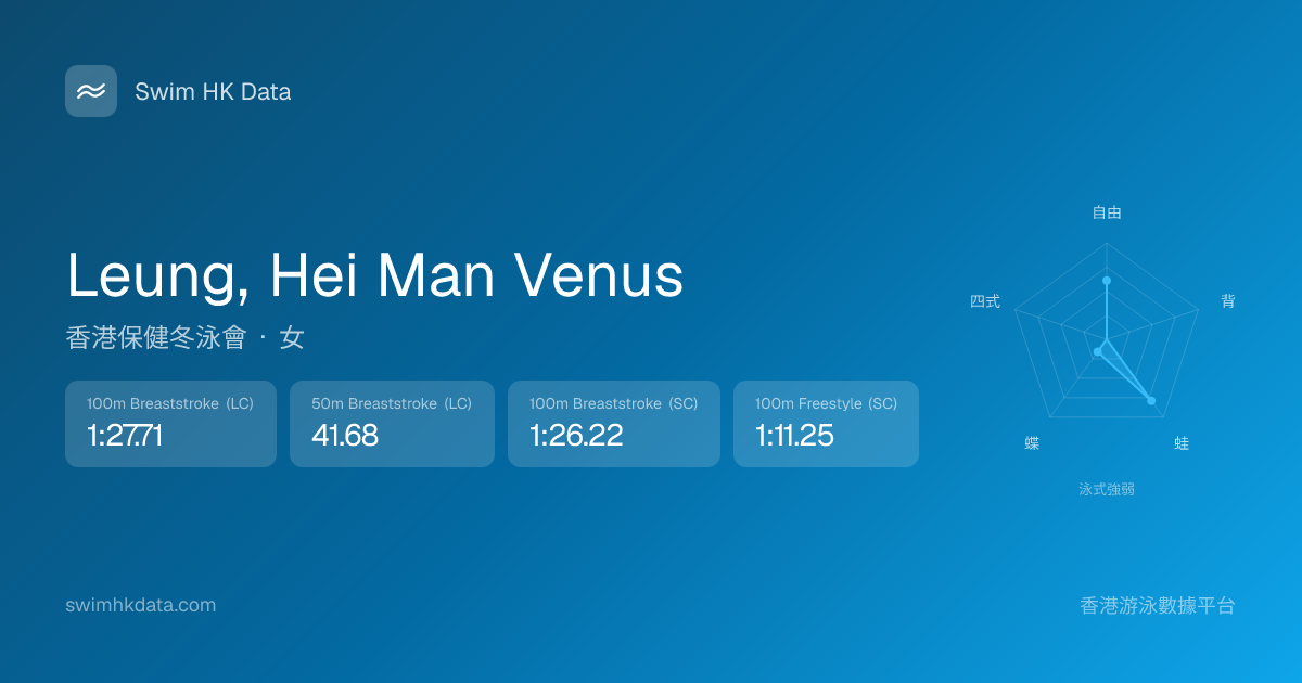 此圖表根據你所有比賽成績計算,顯示你在各泳式的相對強弱,僅供參考。繼續努力,每一次練習都會讓你更快更強!💪