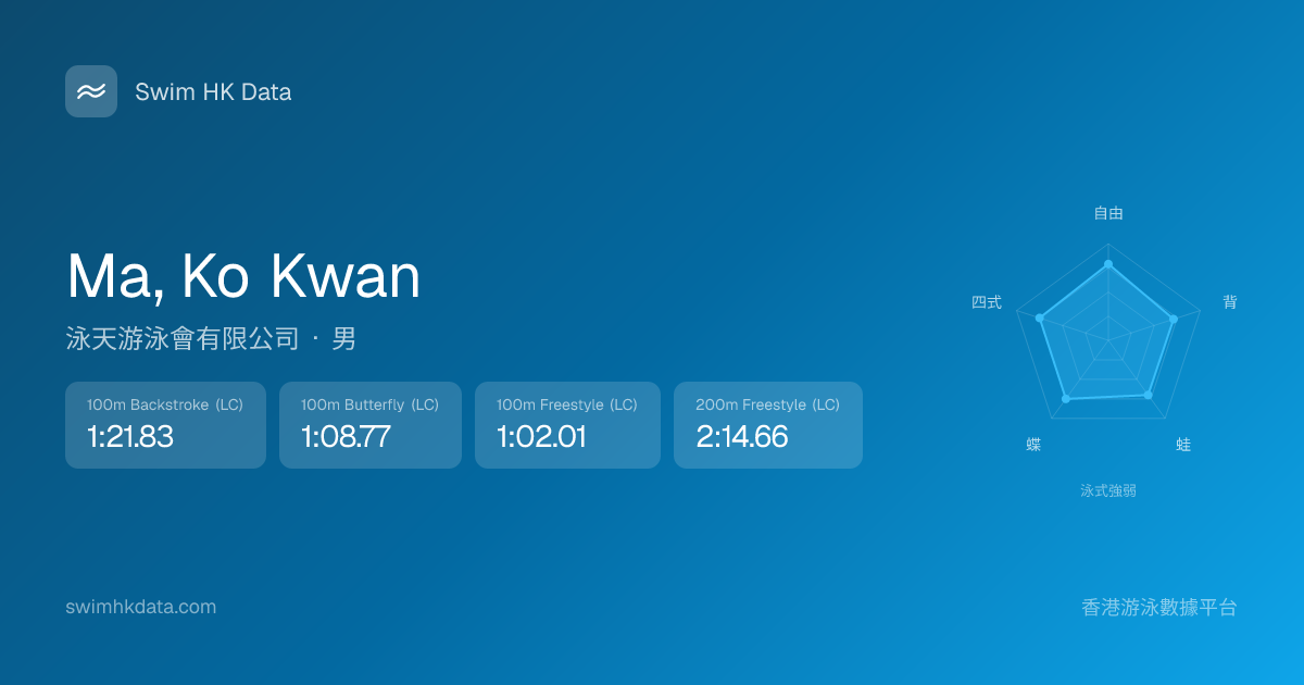 此圖表根據你所有比賽成績計算,顯示你在各泳式的相對強弱,僅供參考。繼續努力,每一次練習都會讓你更快更強!💪