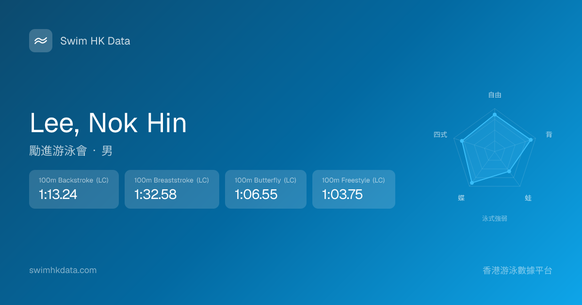 此圖表根據你所有比賽成績計算,顯示你在各泳式的相對強弱,僅供參考。繼續努力,每一次練習都會讓你更快更強!💪