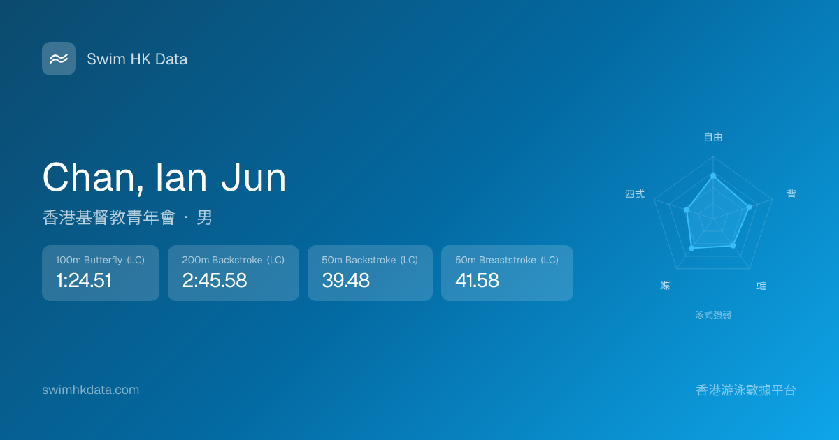 此圖表根據你所有比賽成績計算,顯示你在各泳式的相對強弱,僅供參考。繼續努力,每一次練習都會讓你更快更強!💪