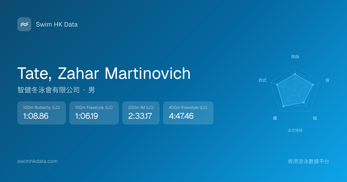 此圖表根據你所有比賽成績計算,顯示你在各泳式的相對強弱,僅供參考。繼續努力,每一次練習都會讓你更快更強!💪
