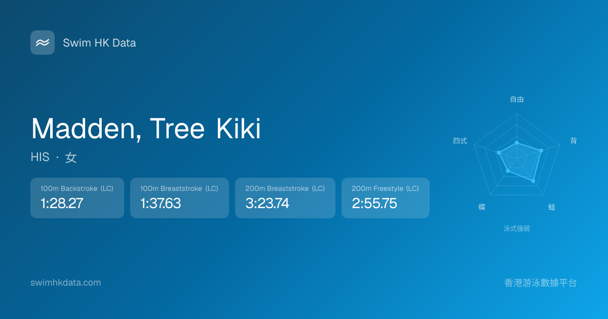 此圖表根據你所有比賽成績計算,顯示你在各泳式的相對強弱,僅供參考。繼續努力,每一次練習都會讓你更快更強!💪