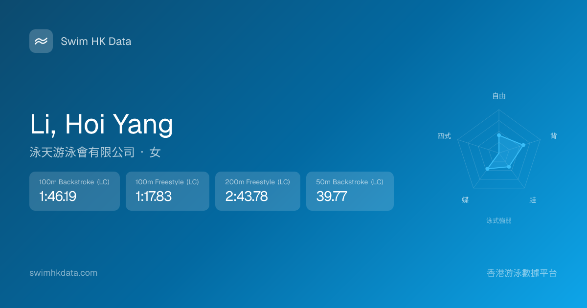 此圖表根據你所有比賽成績計算,顯示你在各泳式的相對強弱,僅供參考。繼續努力,每一次練習都會讓你更快更強!💪