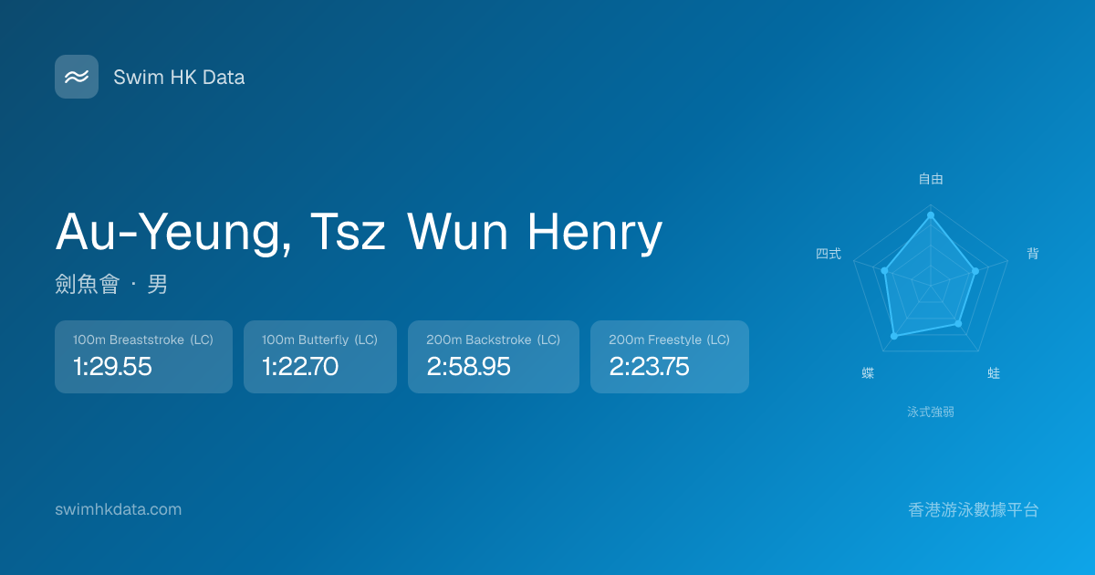 此圖表根據你所有比賽成績計算,顯示你在各泳式的相對強弱,僅供參考。繼續努力,每一次練習都會讓你更快更強!💪