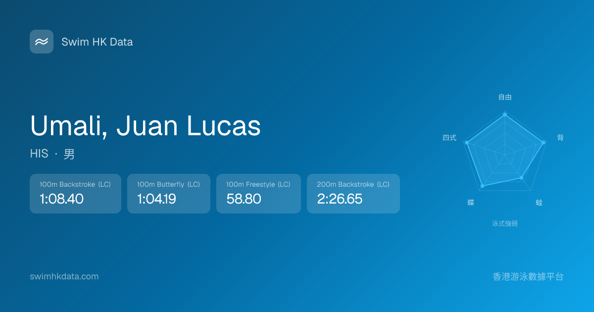 此圖表根據你所有比賽成績計算,顯示你在各泳式的相對強弱,僅供參考。繼續努力,每一次練習都會讓你更快更強!💪