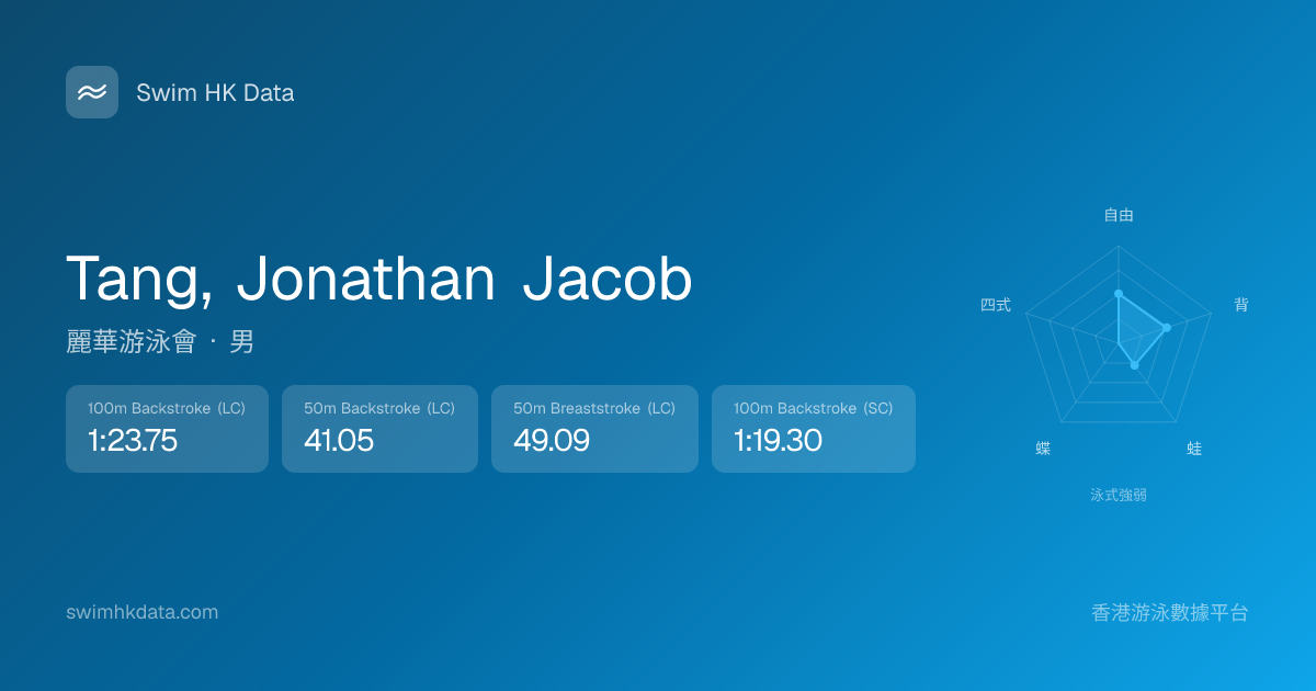 此圖表根據你所有比賽成績計算,顯示你在各泳式的相對強弱,僅供參考。繼續努力,每一次練習都會讓你更快更強!💪