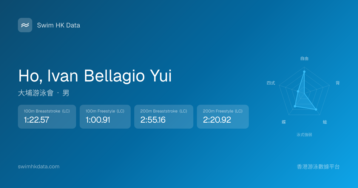 此圖表根據你所有比賽成績計算,顯示你在各泳式的相對強弱,僅供參考。繼續努力,每一次練習都會讓你更快更強!💪